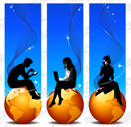 ai formats, including jpg preview, the crucial words: vector network, computers, people cutting, and the earth, business, dynamic lines, vector material